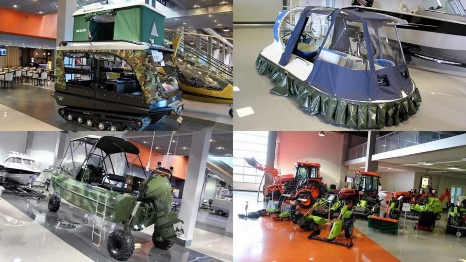 Прибыв в немалый ТЦ «Декстер», что на 78-ом километре МКАД, наша креативная бригада (Ваш покорный слуга и видеооператор Александр Пелевин, который PelevinVideo) устремилась внутрь здания… Ох сколько же здесь дорогих игрушек! Различные судна, катера на воздушных подушках, вездеходы, хочется купить все и сразу, но сейчас это не главное, вон он – шоу-рум с яркими тракторами : )