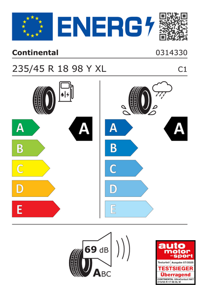 Continental UltraContact NXT также отличается низким сопротивлением качению, что способствует экономии топлива и уменьшению выбросов CO₂. Это стало возможным благодаря использованию особой структуры каркаса и адаптированной резиновой смеси, снижающих внутреннее трение. Шина идеально подходит для гибридных и электрических автомобилей, ведь ее конструкция учитывает высокий крутящий момент, характерный для таких авто, а также обеспечивает тишину и плавность хода.