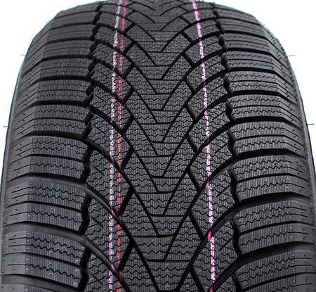 Протектор шины имеет направленный симметричный дизайн с большим количеством волнистых ламелей. Такая структура создает дополнительные кромки сцепления, улучшающие контроль над автомобилем в снежных заносах и при гололедице. Глубокие канавки эффективно выводят воду и талый снег из пятна контакта, уменьшая риск скольжения и аквапланирования.