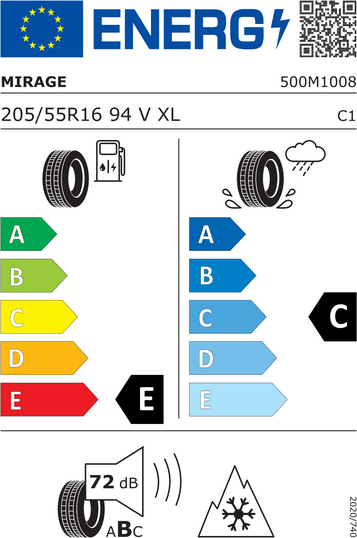 Шины имеют рейтинг топливной эффективности E, что указывает на средний уровень экономии топлива, и оценку C за сцепление на мокрой дороге, что обеспечивает достаточную безопасность в дождливую погоду. Уровень внешнего шума составляет примерно 72 дБ, что типично для бюджетных шин, но может быть заметным на высоких скоростях. Скоростной индекс варьируется от T (до 190 км/ч) до V (до 240 км/ч), что позволяет использовать шины на разных типах автомобилей, включая модели с более высокими требованиями к скорости.