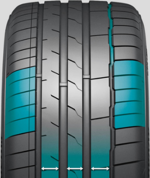 Конструкція шини K127E відзначається спеціальним армуванням і посиленим каркасом, що підвищує стійкість у поворотах та зменшує деформацію при динамічному навантаженні. Сучасна асиметрична будова протектора забезпечує ефективне відведення води, надійне зчеплення з дорогою як на сухій, так і на вологій поверхні. Завдяки цьому Ventus S1 Evo 3 SUV EV демонструє відмінні гальмівні властивості та зберігає стабільність навіть за несприятливих погодних умов.